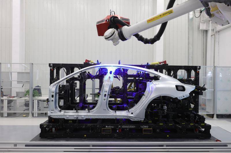 走进小米汽车工厂,可以看到一台台“工业巨兽”不断运转,这里总共9100t的一体化大压铸设备集群,每120秒就可以生成一个压铸件,给人一种工业设计的庞大与精妙的巧妙结合之感。北京青年报记者在现场一条产线看到,在车身被悬吊着送到工位后,一个工位上的8台机器人开始工作,拍照机器人负责定位,自动上料的机器人负责抓取车门并搭建,两侧的机械臂会同时带着拧紧枪,前来拧螺栓、打铰链,所以单侧就有4台机器人,几秒钟便可以安装好一台车的车门。在检测环节,机器人代替人眼识别,在84秒内,为设备拍摄28张照片,并在1秒内判定完成这个零件是否符合标准,仅在小米汽车工厂的车身车间内,就有207个关键检测点都是靠自动检测完成的,行业处于领先。